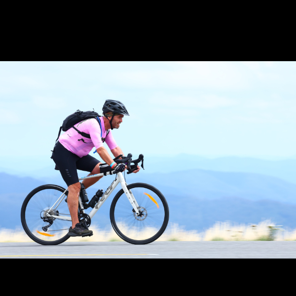 Competing in the cycling event - Peaks Challenge located in 'Falls Creek' Victoria.