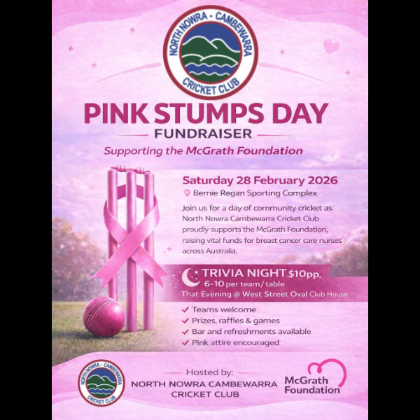 Our local cricket teams are turning Pink on the 28th of February 2026 to raise funds for the McGrath Foundation. We will have 4 teams playing at home as we turn Bernie Regan pink for the day.